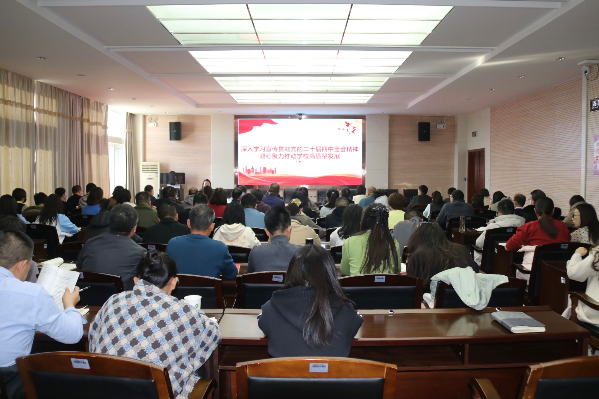 为深入学习宣传贯彻党的二十届四中全会精神,将学习成果转化为推动学校事业发展的强大动力,11月20日下午,学校副校长黄文娟同志以“学习宣传贯彻党的二十届四中全会精神 推动学校高质量发展”为题,在竞勤楼二楼会议室宣讲党的二十届四中全会精神,学生工作部、计划财务处、就业与合作交流处、后勤服务处、团委、创新创业学院、图书馆、商学院及宁夏农业学校等部门的师生党员代表参加。