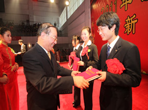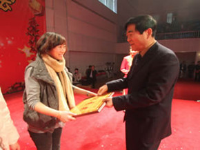 载歌载舞辞旧岁,发展成果共分享;又是一年春光好,壮美蓝图催人进。新年临近,校园里辞旧迎新的喜庆气氛日益浓厚。12月27日下午,学校以隆重召开2011年度学生表彰大会和新年文艺汇演的方式,辞旧岁分享喜悦,迎新年提振信心。学校党委书记张怀斌、校长撒承贤、党委副书记宋玉琳,副校长马少先、王冀川,纪委书记刘荣耀,副校长马吉保、丁金英出席大会并观看了文艺汇演,来自各教学单位的师生代表、党群行政部门的工作人员共1800余人济济一堂,共享喜悦。