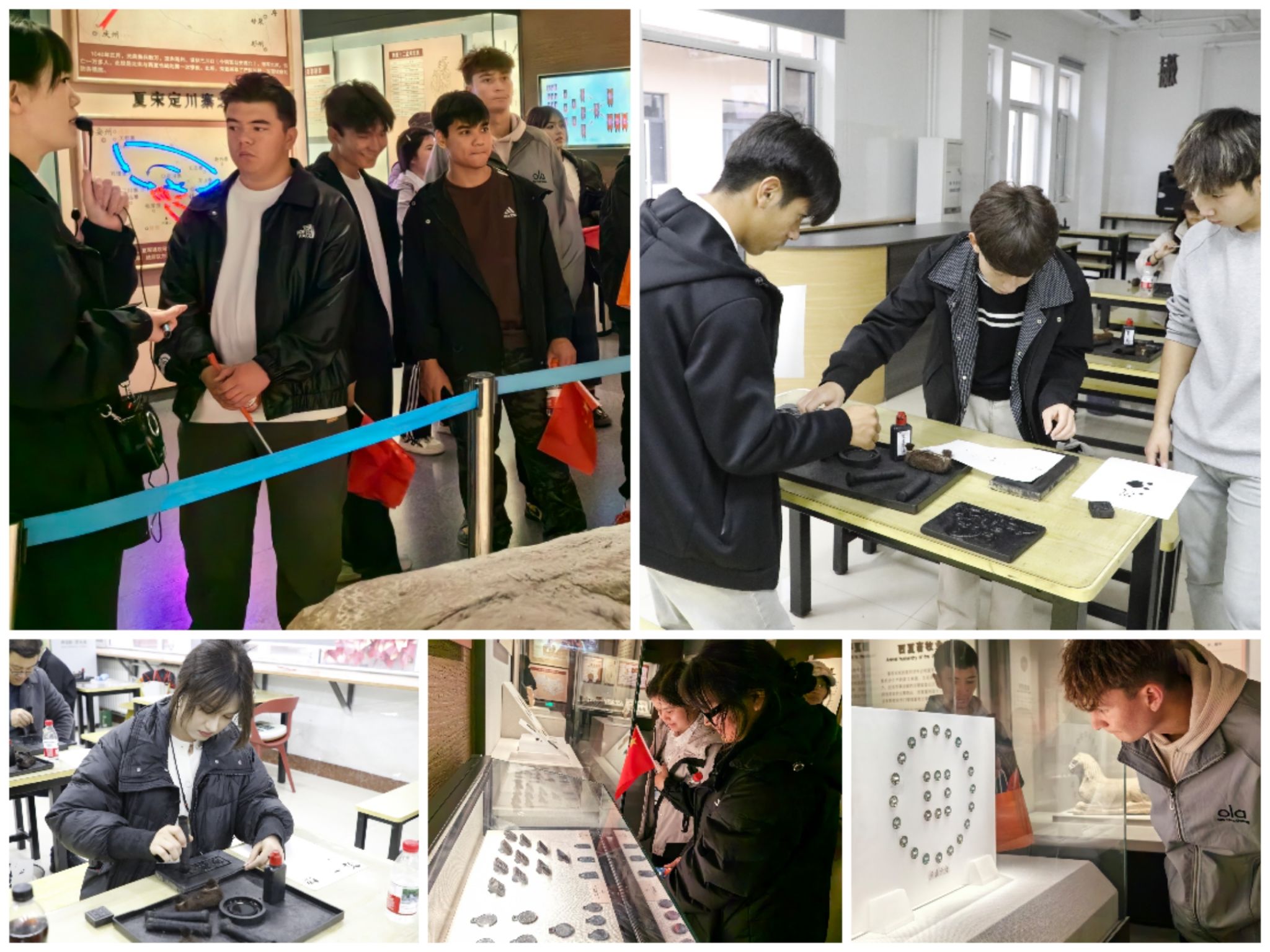 活动伊始,同学们观看了4D影片《时空秘境之旅》。随后,师生们参观了西夏博物馆。在专业讲解员的引导下,大家聚焦“鎏金铜牛”、“迦陵频伽”等珍贵文物,深入了解了由党项、汉、回鹘、吐蕃等多民族共同缔造、融合创新的西夏文明。实地探访巍峨的夯土陵塔时,同学们无不为古代多民族工匠展现的卓越工程技术智慧所折服。活动最受欢迎的环节是活字印刷体验。同学们亲手排版、认真印制,在墨香氤氲中,深刻感受了这项伟大发明对中华文明传承与传播的深远影响。
