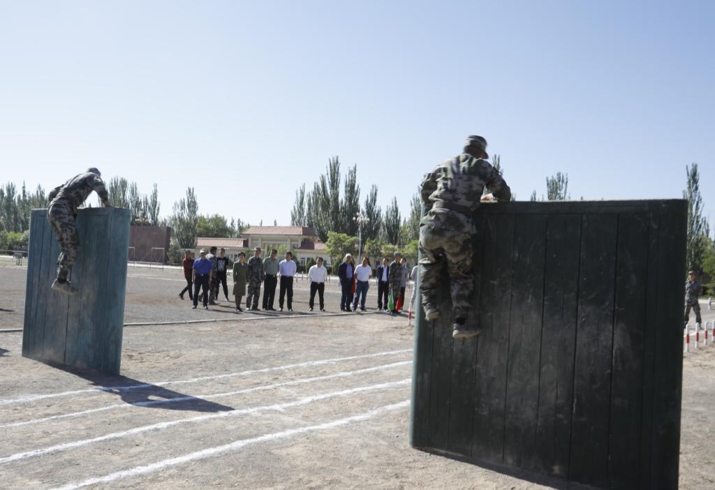 随后,我校一行人员观摩了队列训练、400米障碍训练及侦察兵战术训练,参观了战士们的宿舍和主战装备展示,观看了宣传短片。