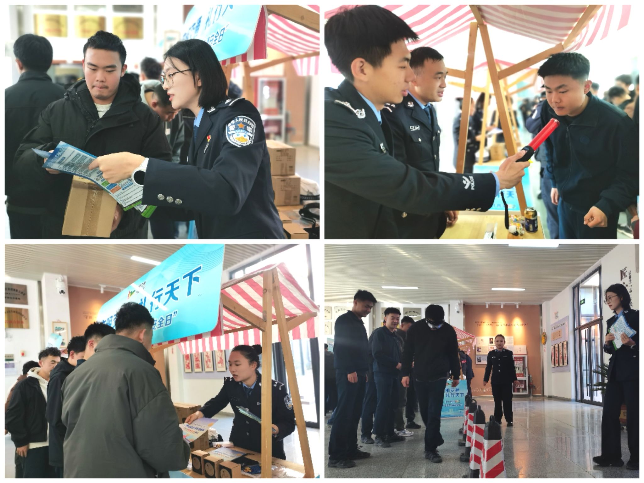 活动开启幕前,外场精心设置的酒驾体验“小店”、事故警示“小店”、禁毒“小店”、反诈“小店”等互动体验区,成为现场师生学习安全知识的“移动课堂”热闹非凡。在酒驾体验“小店”,学生代表戴模拟酒驾眼镜试走直线、绕障碍,直观感受酒精对判断力的影响;事故警示“小店”展示的事故车辆,让大家直观感受“违章一秒,危险万分”;禁毒与反诈小店通过实物、案例科普防护知识。各体验区同步开展答题互动,学生答对安全相关问题可赢取定制钥匙扣、反光贴等礼品,在趣味中加深知识记忆,为活动预热。