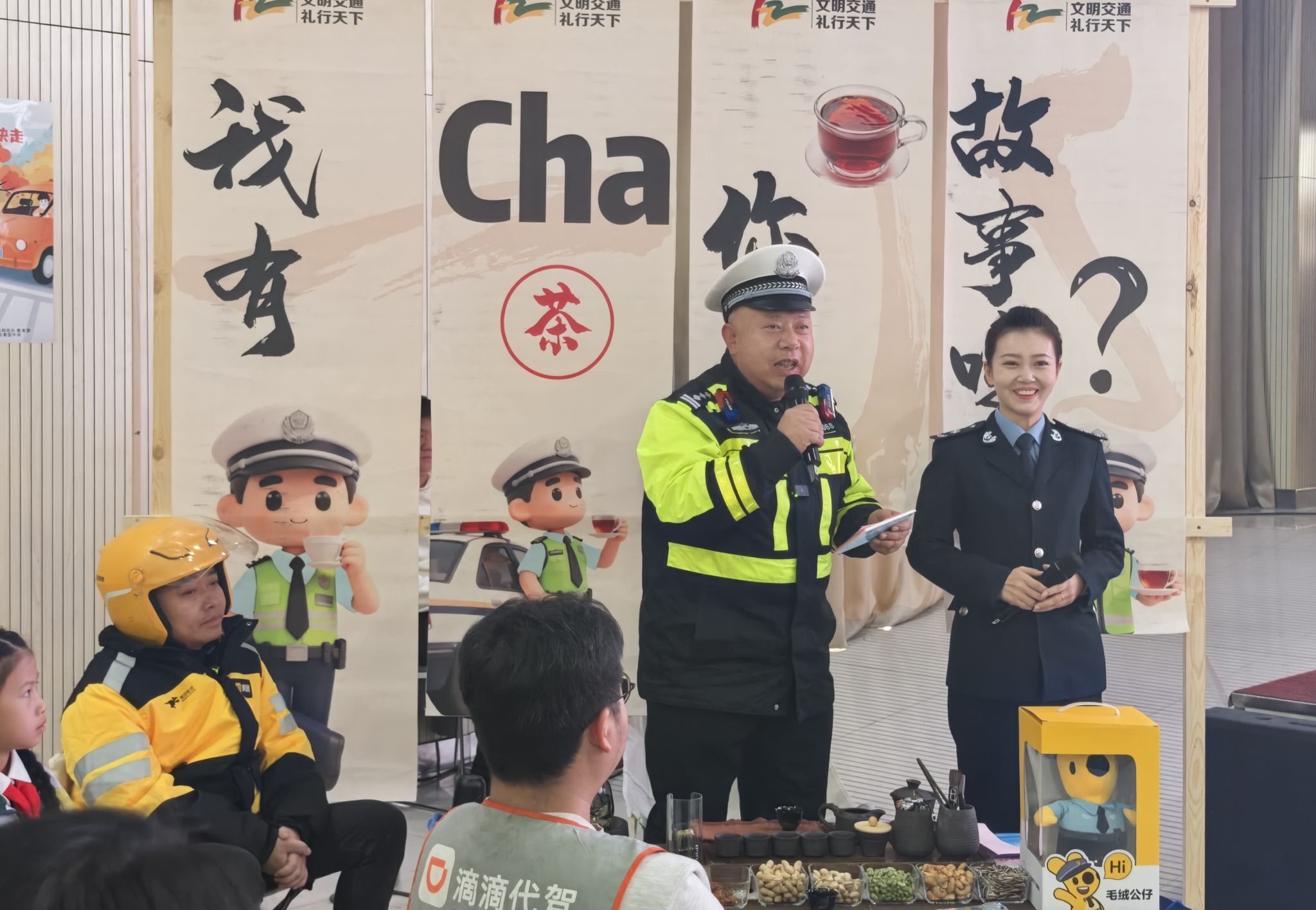 活动在激昂的开场歌舞《奋进新时代》中启幕,全面展现了银川交通奋进姿态。随后相声《追悔莫及》以幽默表演凸显酒驾危害,引发共鸣。为让文明交通理念贴近生活,活动设“我有茶,你有故事吗”副舞台互动,银川交警鸿胜警官与外卖骑手、滴滴司机、学生围坐交流,骑手谈“抢时间更要守规则”,司机分享驾驶技巧,学生表达校园周边安全期待,让“文明交通”落地日常;宁夏灵机数字科技有限公司研发的机器人“犇犇”携手银川交警飓风行动队带来科技互动演出,增添宣传趣味。银川交警同时倡议现场全体师生将对生命的敬畏带回家,让安全意识、文明礼让融入每次出行,从自身做起共建安全有序交通环境,让银川每条路都成为幸福平安大道。